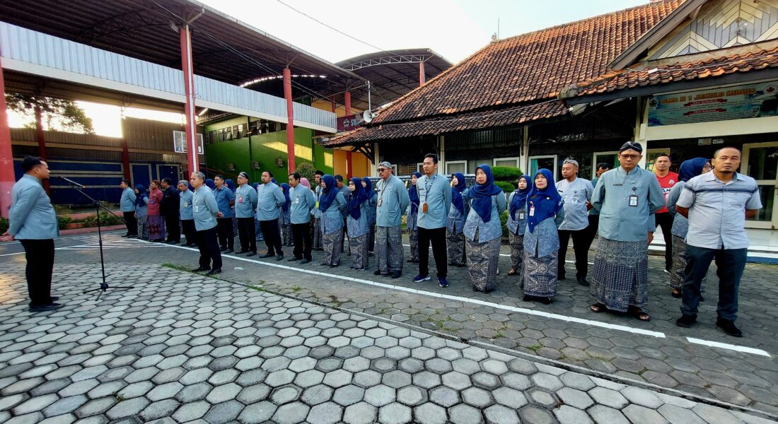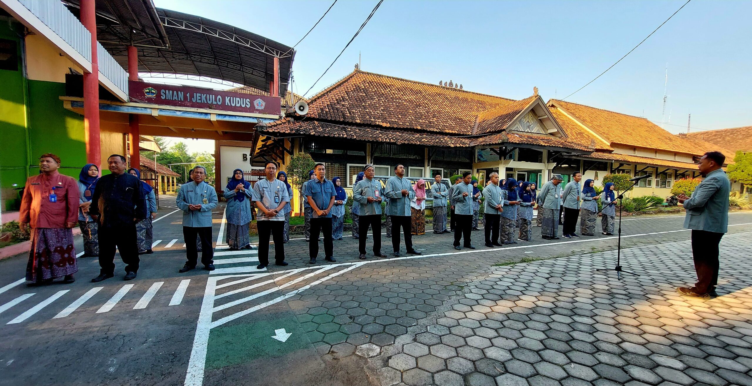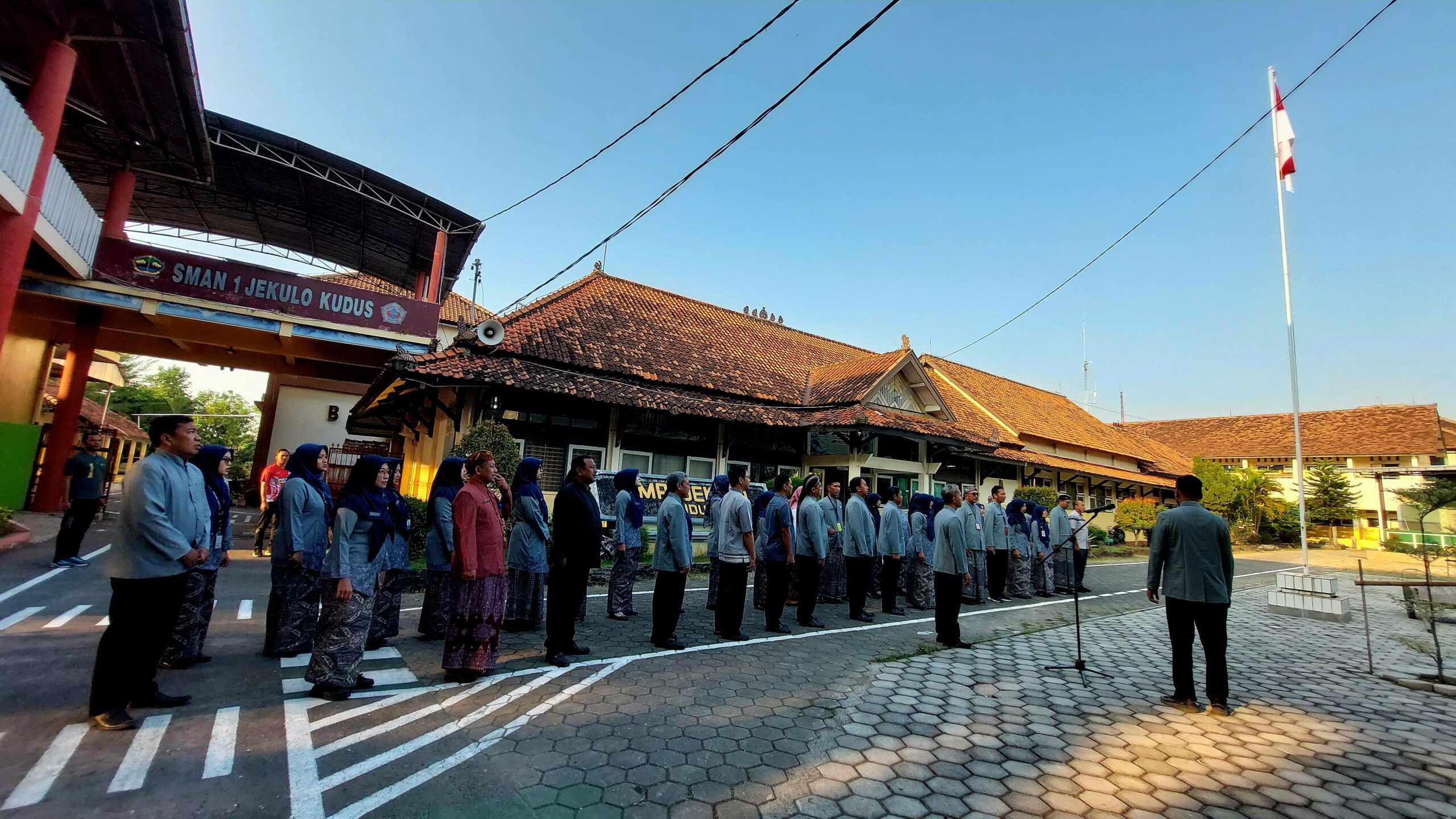 Kudus,SalokuNews. Guru dan tenaga kependidikan (Tendik) SMA Negeri 1 Jekulo melaksanakan apel pagi pada hari Kamis (24/7/2025) . Apel pagi dilaksanakan di halaman depan SMA Negeri 1 Jekulo pukul 06.45 – 07.00 WIB sebelum dimulai kegiatan belajar mengajar (KBM). Terlihat barisan balutan kebaya dengan rapi, menghiasai halaman SMA Negeri 1 Jekulo.